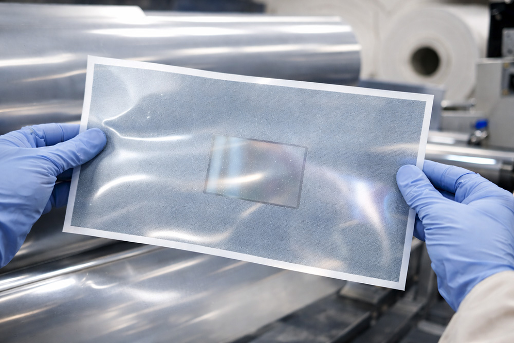 The base is a special film, not ordinary plastic. The material is flexible, stable, and ready for multi-layer printing. Transparent windows are part of the substrate from the beginning.