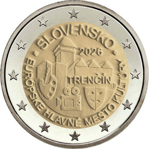 On the occasion of the prestigious title European Capital of Culture, which the city of Trenčín will receive in 2026, a commemorative two-euro coin will be issued. The winning design by Branislav Ronai impressively depicts a view of the Trenčín Castle, one of Slovakia's most significant historical landmarks. In the background are architectural elements of a modern cultural space, symbolizing the connection between history and the present. The committee praised not only the technical execution but also the strong visual and symbolic message of the design.